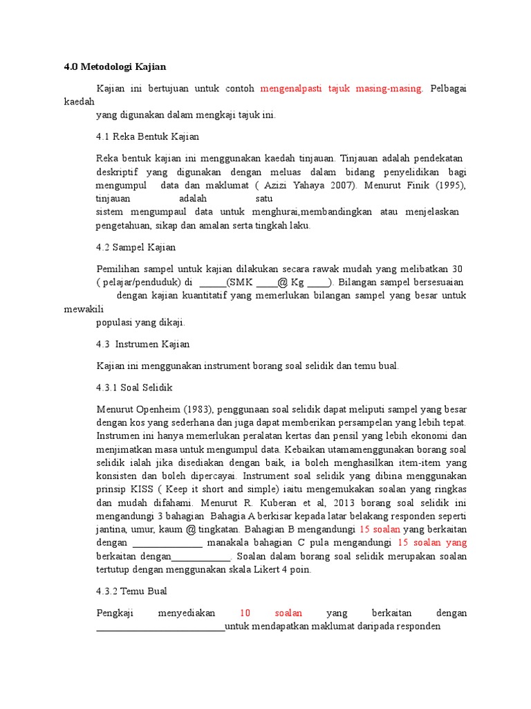 Contoh Penulisan Bab 3 Metodologi Kajian Pdf